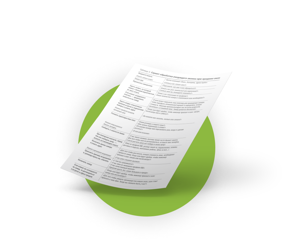 Списком каналов привлечения клиентов, скриптами, инструкциями по работе с каналами